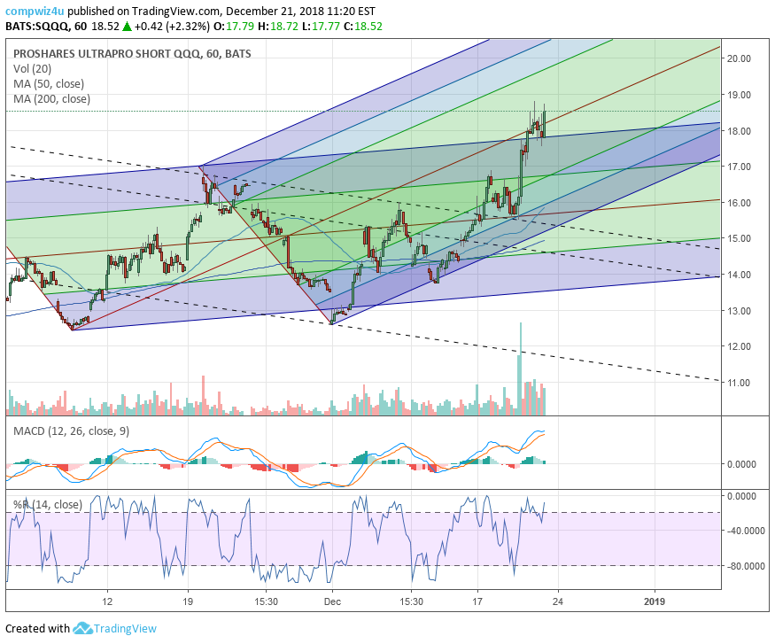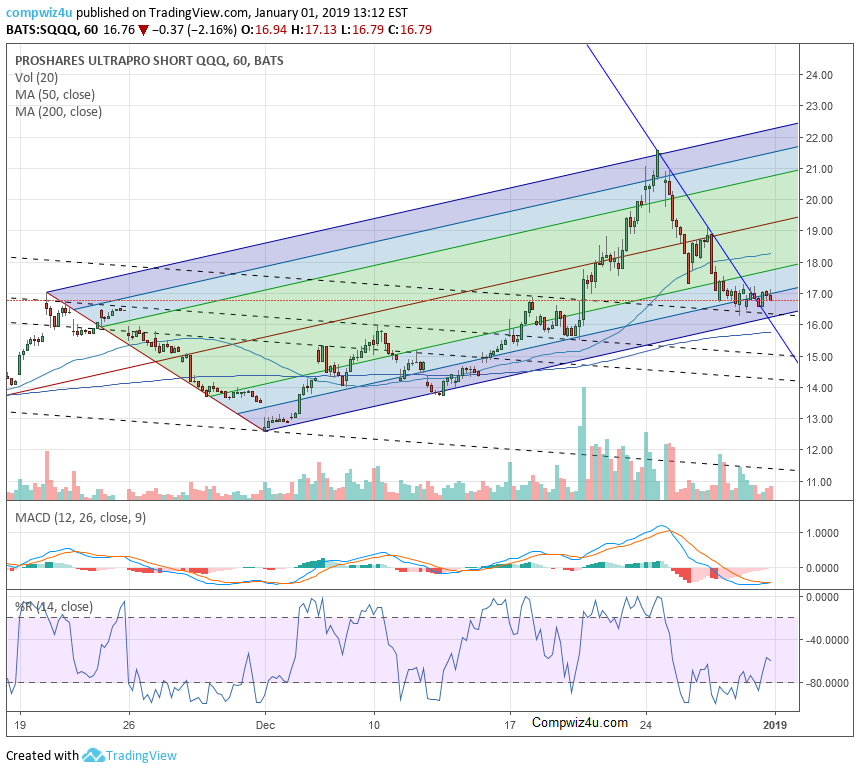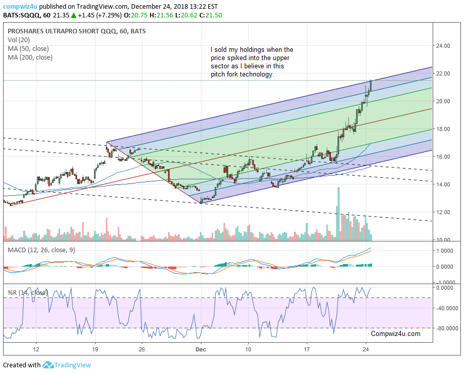 1/1/2019 SQQQ then fell sharply after reaching the top of the pitchfork. Since the overall stock market started